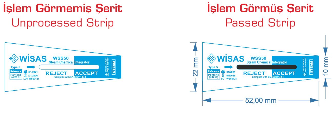 WİSAS Type 5 Kimyasal Entegratörleri biyolojik indikatöre en yakın sonucu veren indikatörler olup, biyolojik ölümle doğru orantılı olarak çalışmaktadır.