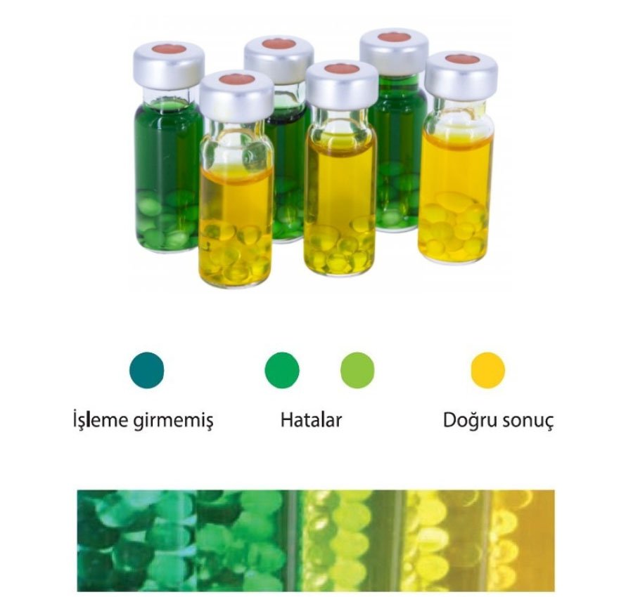 Kavitasyon enerjisi yeterli olduğunda, cam incilerin titreşimi, solüsyonda yeşilden sarıya veya Kırmızıdan sarıya renk değişimi sağlar.
